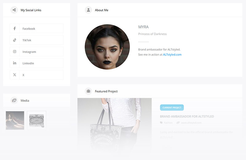 Create a clean, shareable hub for all your social profiles, websites and projects.